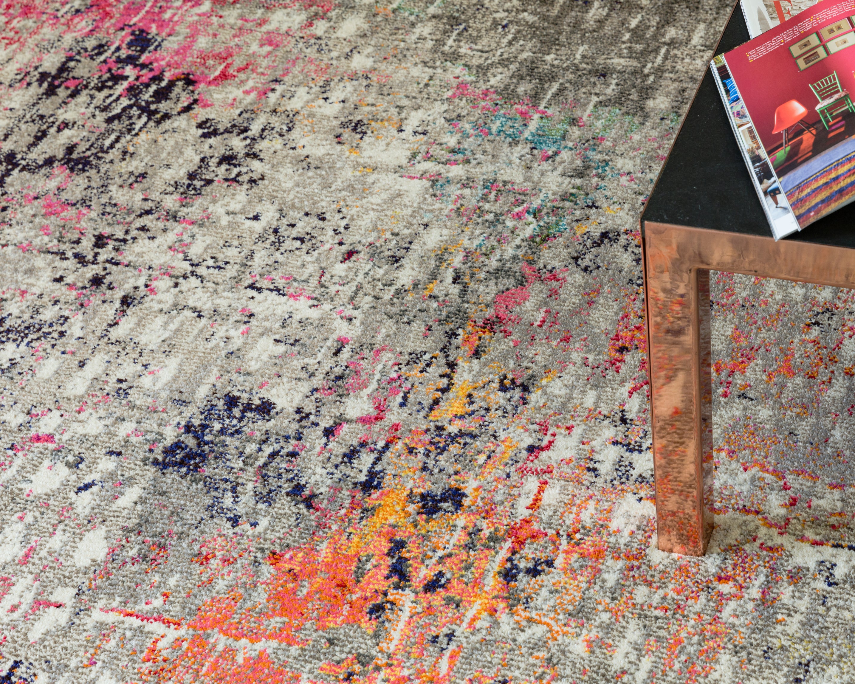 La alfombra Colores, hecha de polipropileno, resulta ideal para casi todos los entornos. Su composición de fibras sintéticas la hace versátil y muy fácil de mantener limpia. La estructura y variada paleta de colores complementan el diseño moderno.